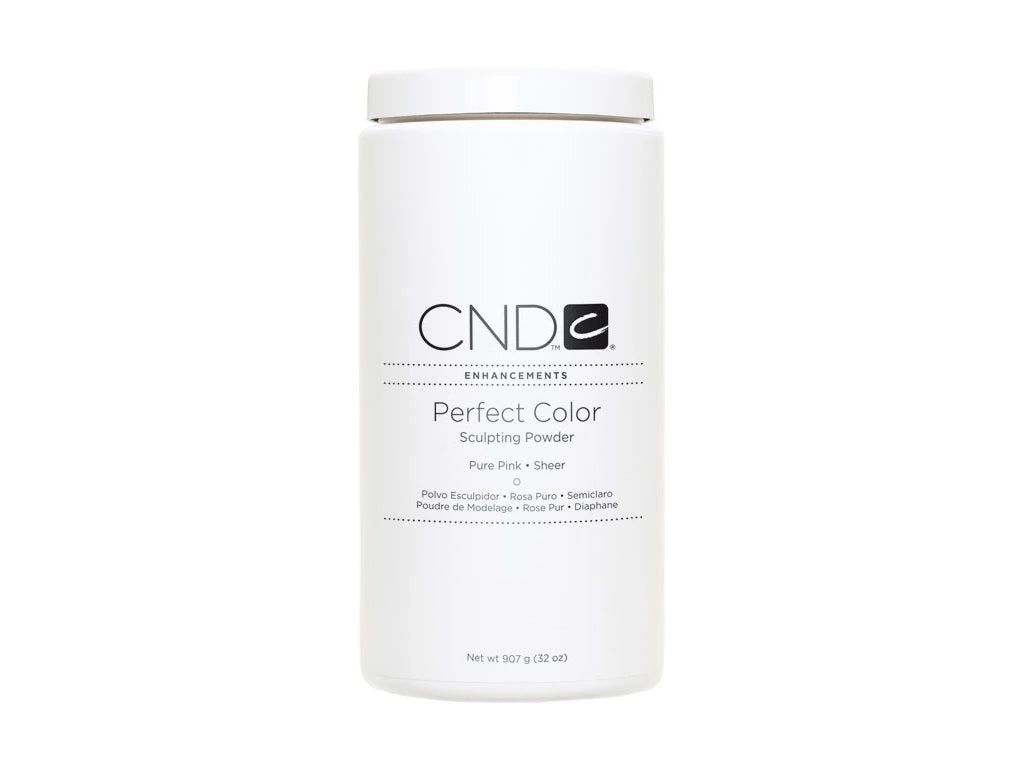 Brighten nails with CND Perfect Color Powder Pure Pink Sheer 32oz. This large-capacity sheer acrylic powder provides durability and flexibility, perfect for high-volume professional use with a natural pink finish.